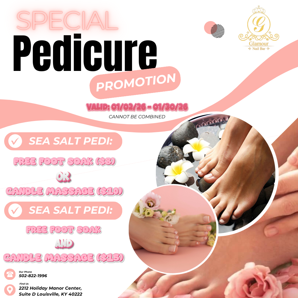 Glamour Nails & Spa is mainly walk-ins basis. We do offer appointments. However, scheduling an appointment guarantees service and priority, but does not guarantee your service will begin at the requested time. Estimated and actual service times may vary. Please allow for extra time in your schedule when making an appointment. If you need to be done at a specific time please let the front desk know and we’ll be glad to let you know if it can be accommodated. The time block for each service is an estimated value based on typical average time spent. Actual service time may vary depending on the selection of services at check-in and the condition of each customer.